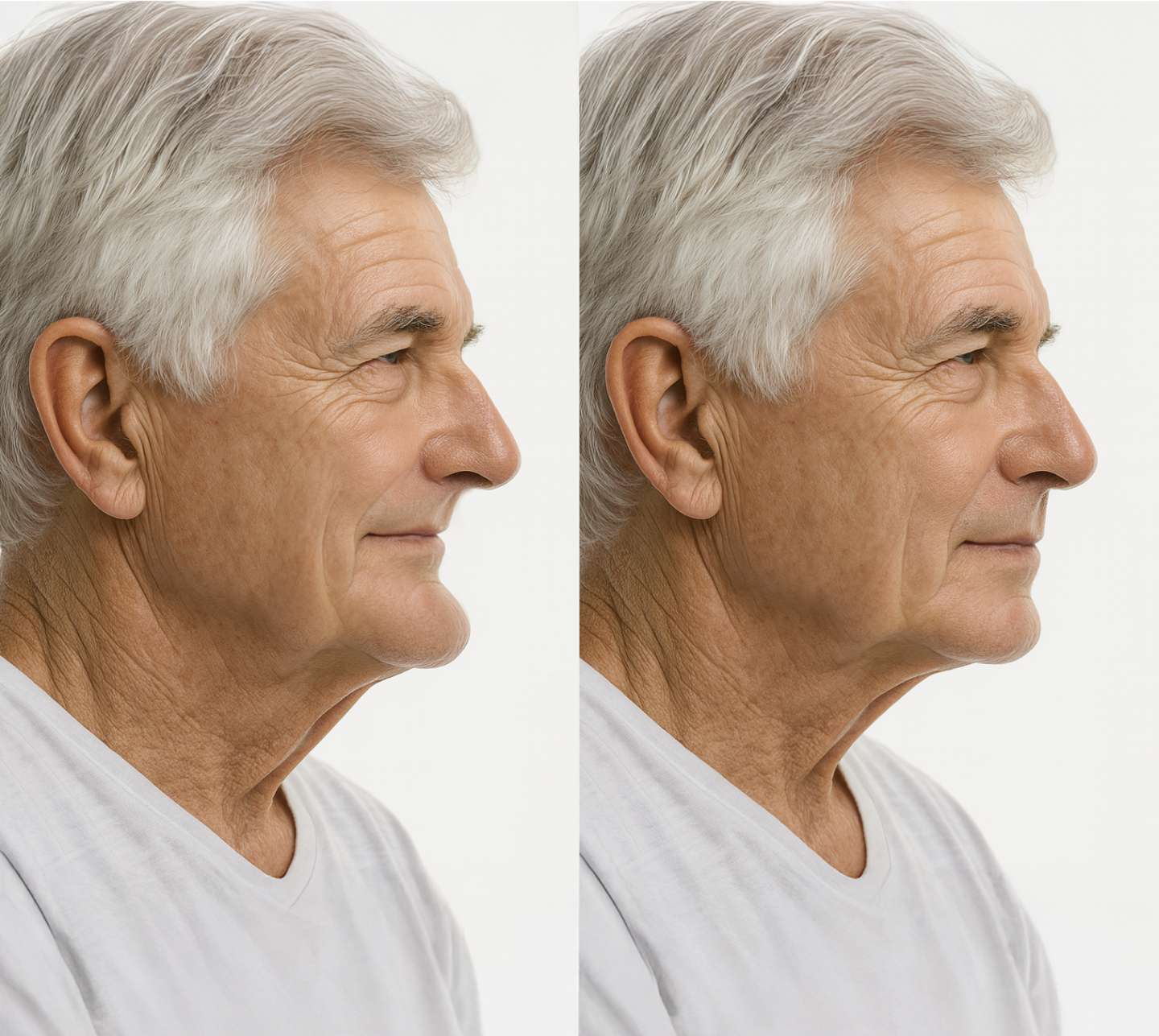 Yes — the facial oval becomes more defined, the face appears younger and more symmetrical.