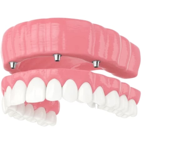The prosthetics are fixed onto 4 implants, providing a reliable and stable support.