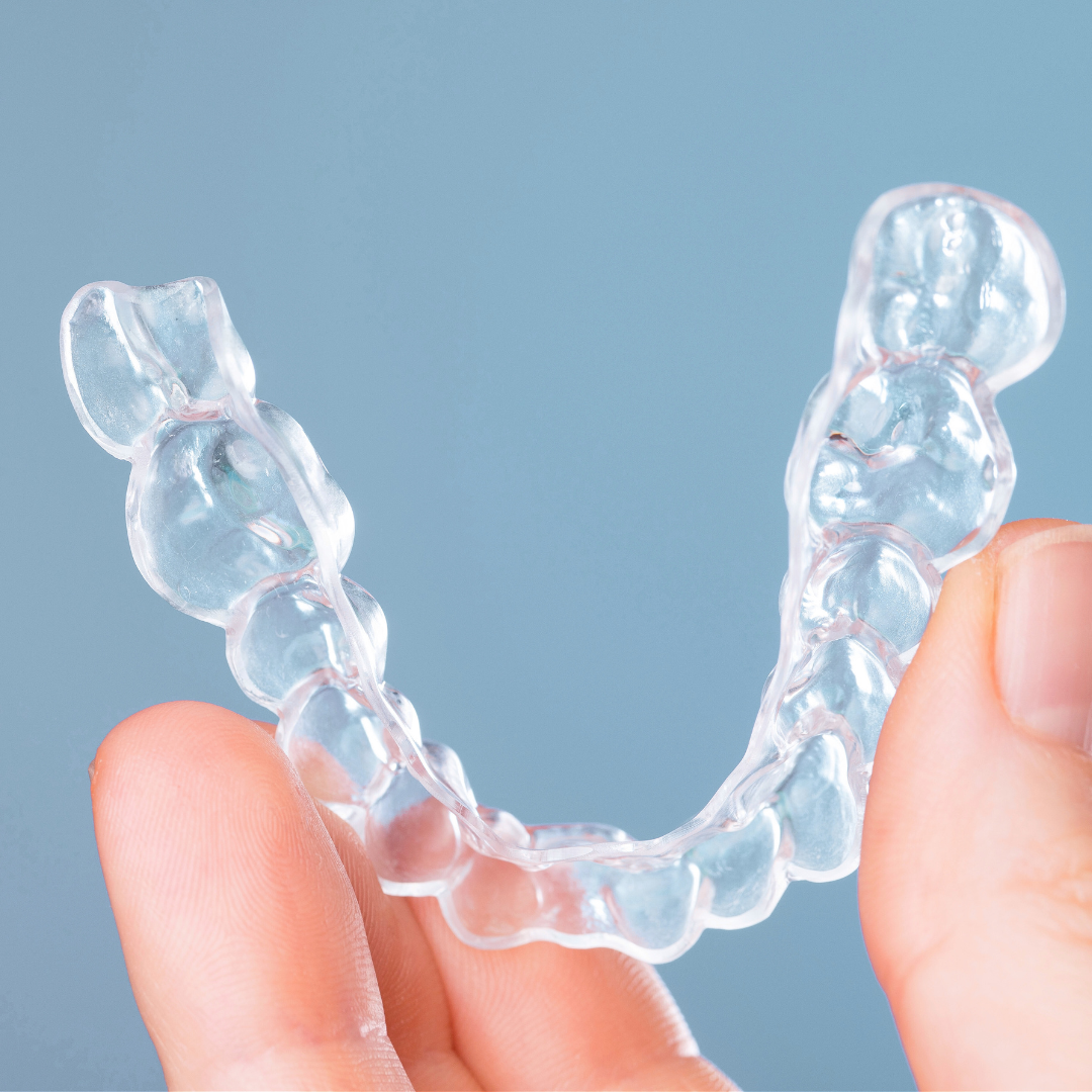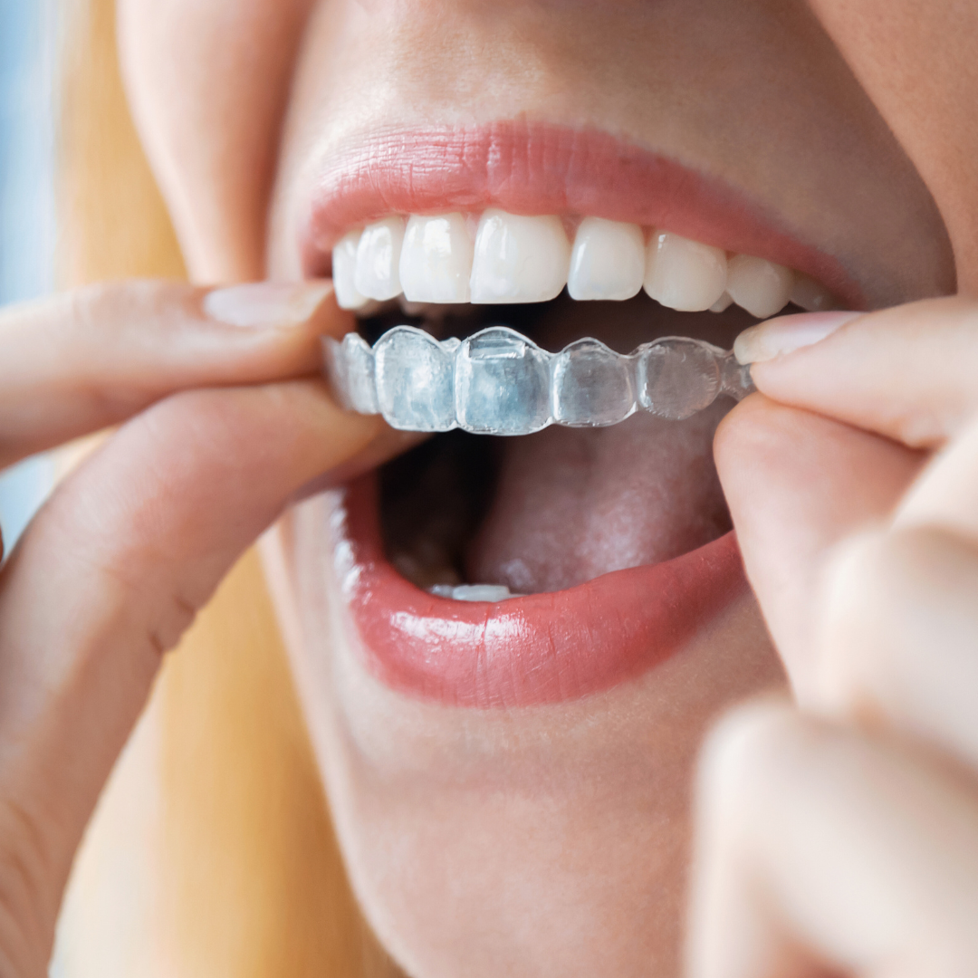 Ordoline ir caurspīdīgas ortodontiskās kapes, kas pakāpeniski iztaisno zobus bez breketēm.