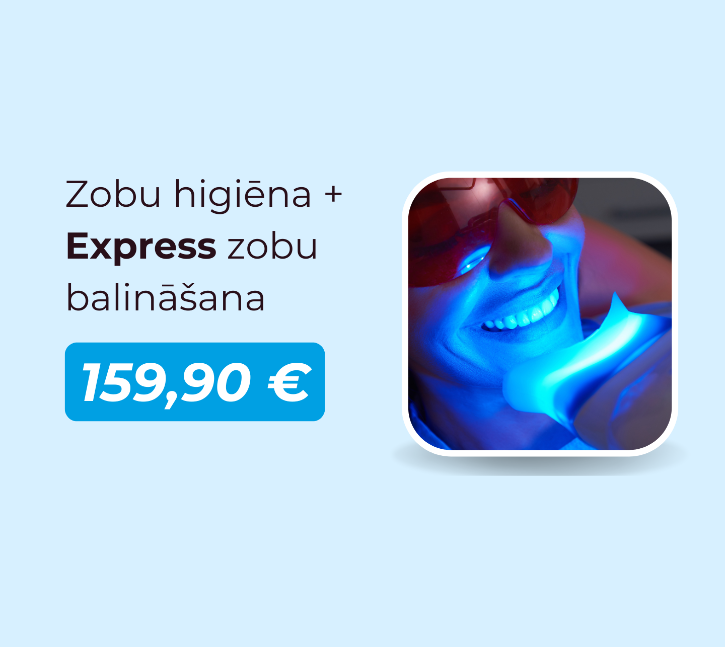 - lai uzlabotu efektu, uzreiz pēc zobu balināšanas tiek veikta Express zobu balināšana. Uz 15 min tiek uzklāts speciāls balināšanas gels un izmantota jaunākās paaudzes PHILIPS ZOOM WHITE SPEED balināšanas sistēma, kurā tiek pielietota uzlabota UV gaismas spektra lampa, kas aktivizē balinošo gelu un tās iedarbības laikā zobi netiek pakļauti karstuma ietekmei, kas varētu bojāt zoba struktūru, jo UV staru lampa neuzsilda zobu balināšanas laikā.